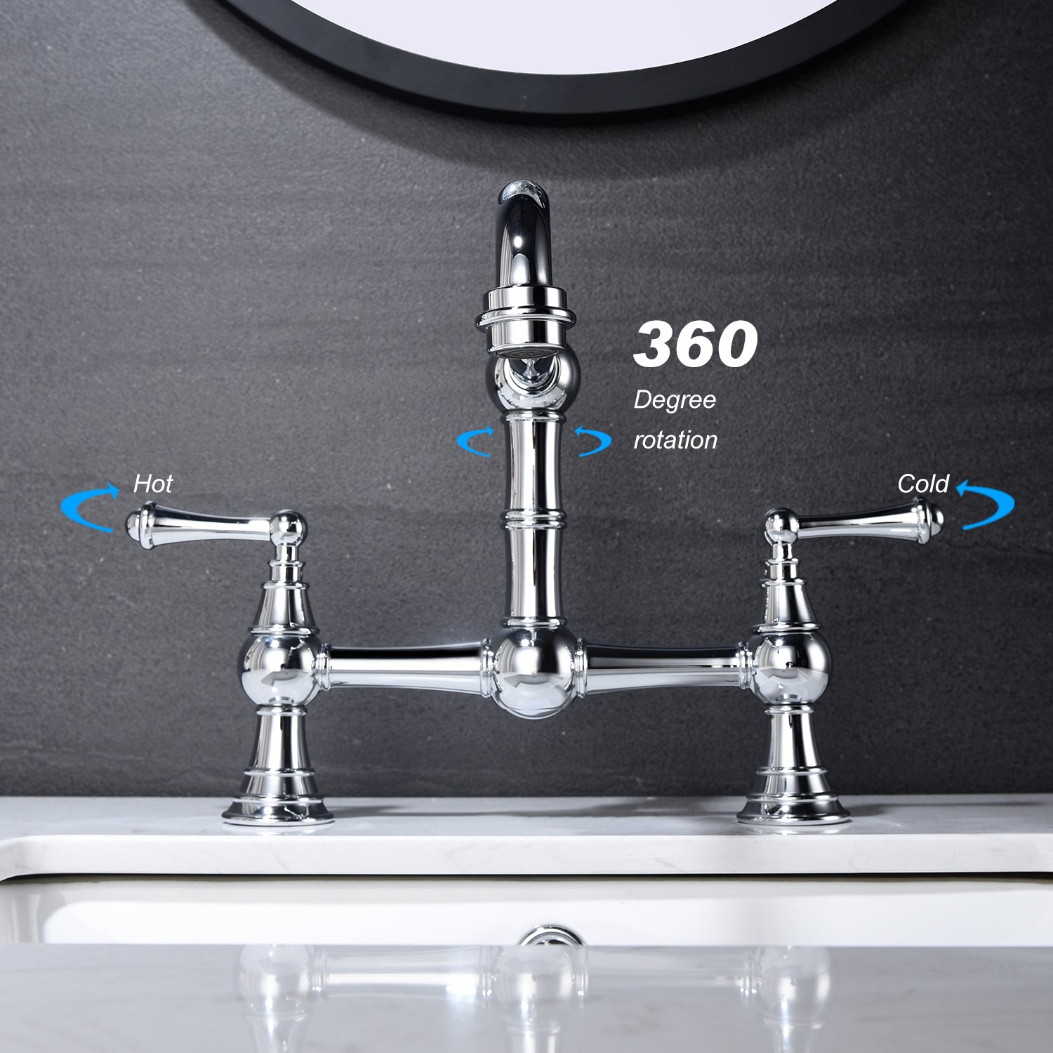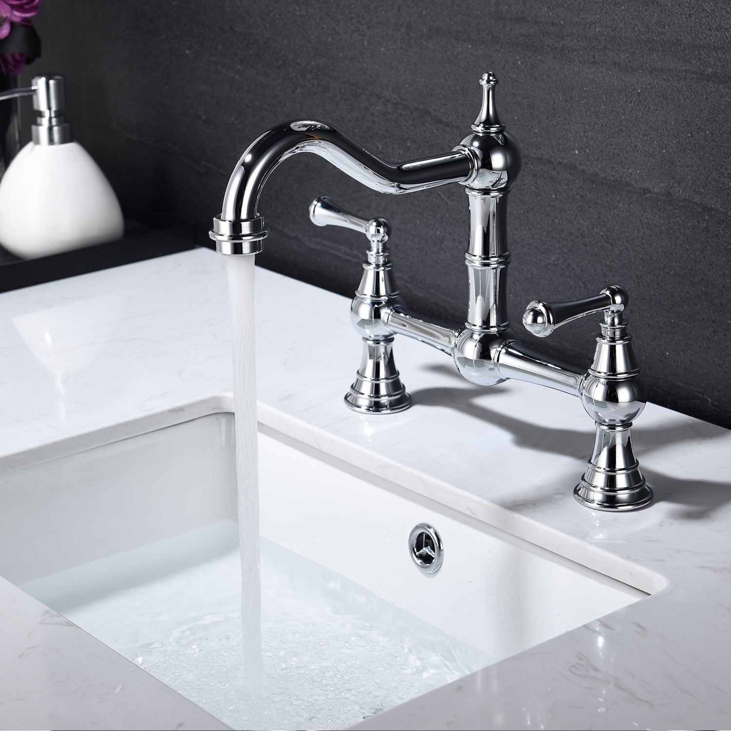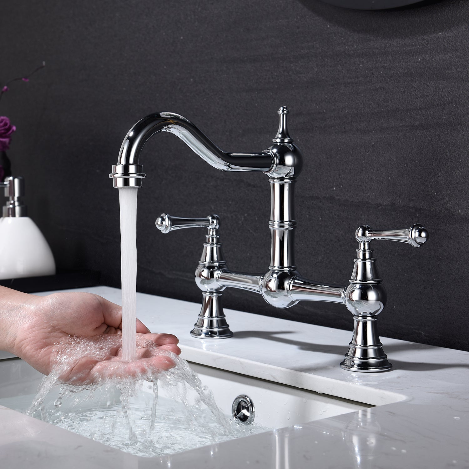Double Handle Widespread Kitchen Faucet with Traditional Handles