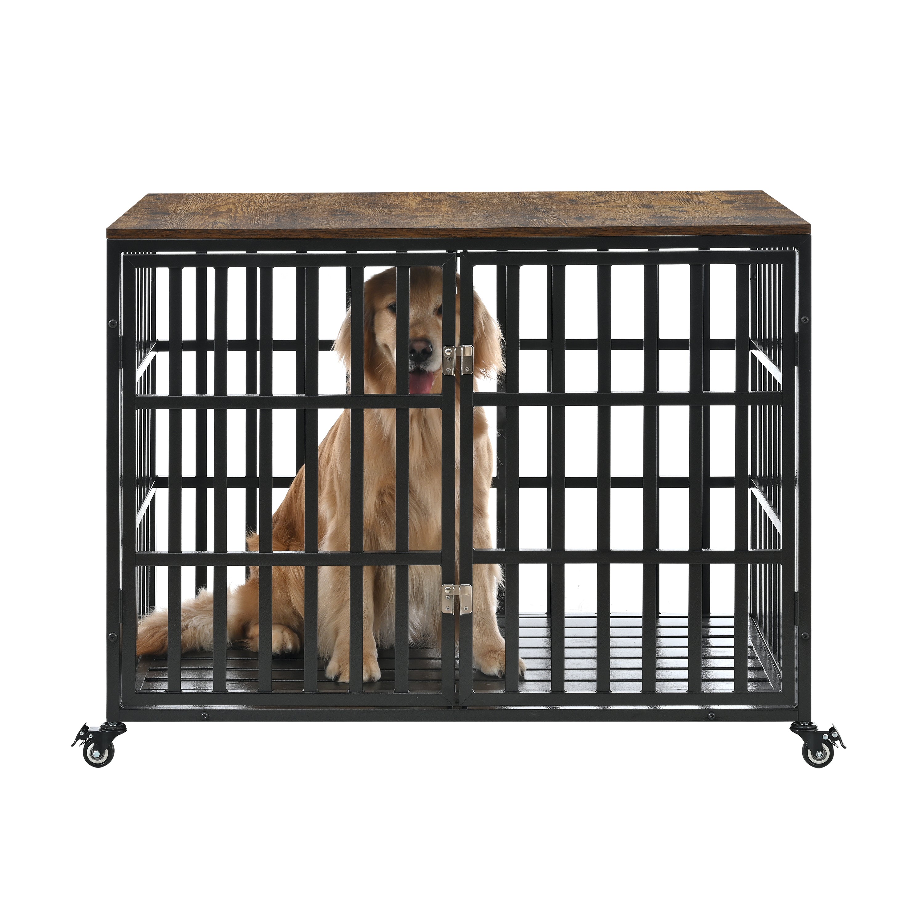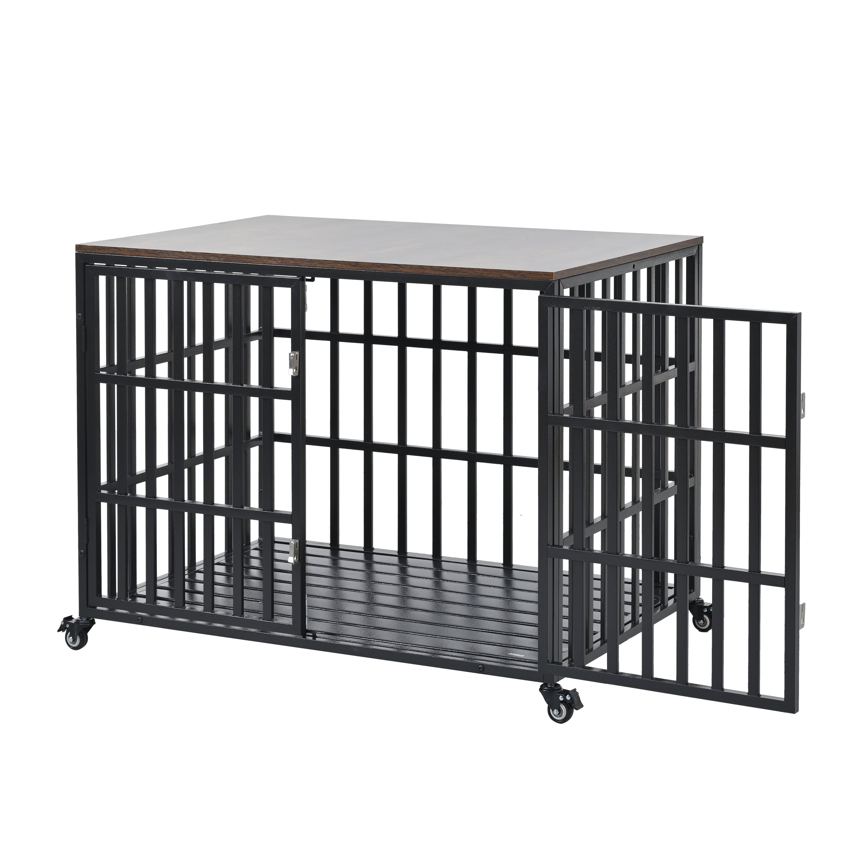 42" Heavy Duty Dog Crate for Large Medium Dogs, Furniture Style cage with 4 Lockable Wheels and 2 Locks, Decorative Pet House Wooden Cage Kennel Furniture Indoor