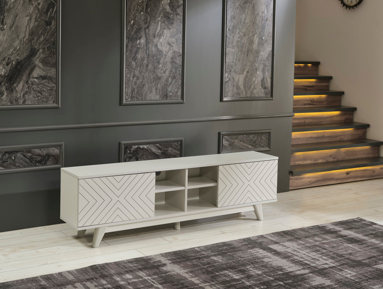 FurnisHome Store Lina Mid Century Modern Tv Stand 2 Door Cabinet 4 Cubby Hole Shelves 67 inch Tv Unit, Grey