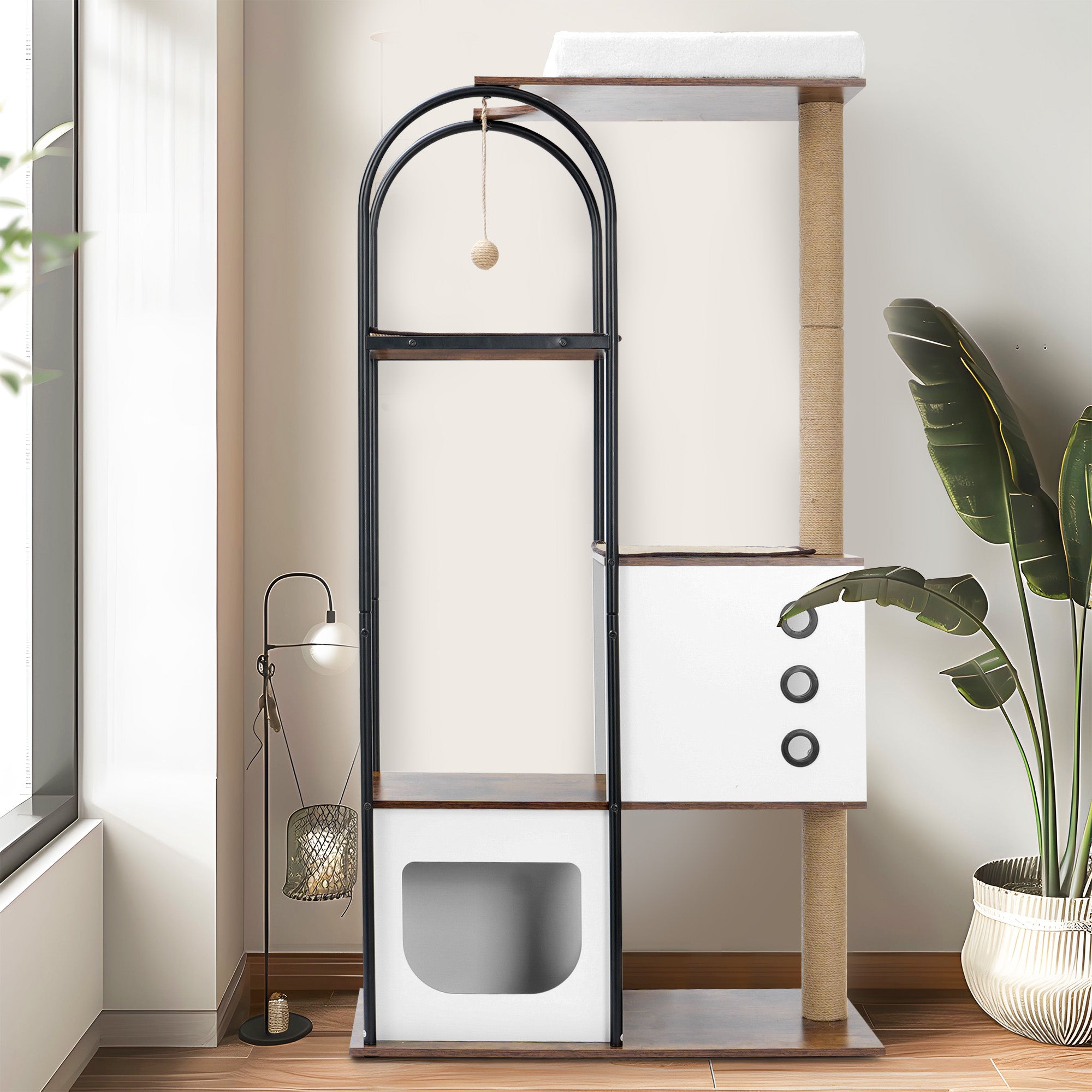 • 3.Modern Style: With rectangular design and curved steel tubes, this cat tree condo is sophisticated and modern. Whether you put it in your living room, bedroom or balcony, anywhere, this cat tree will give your space an upgrade.