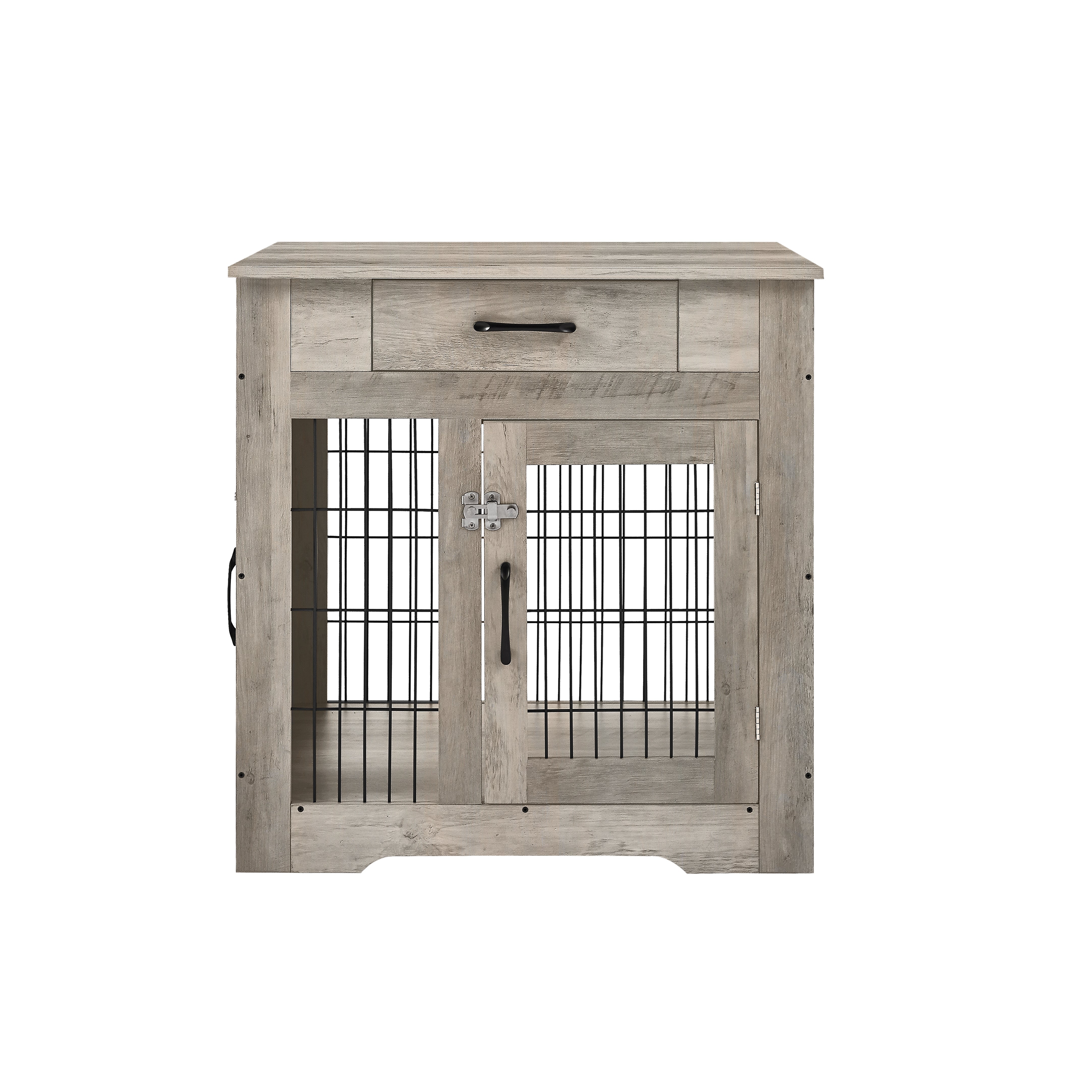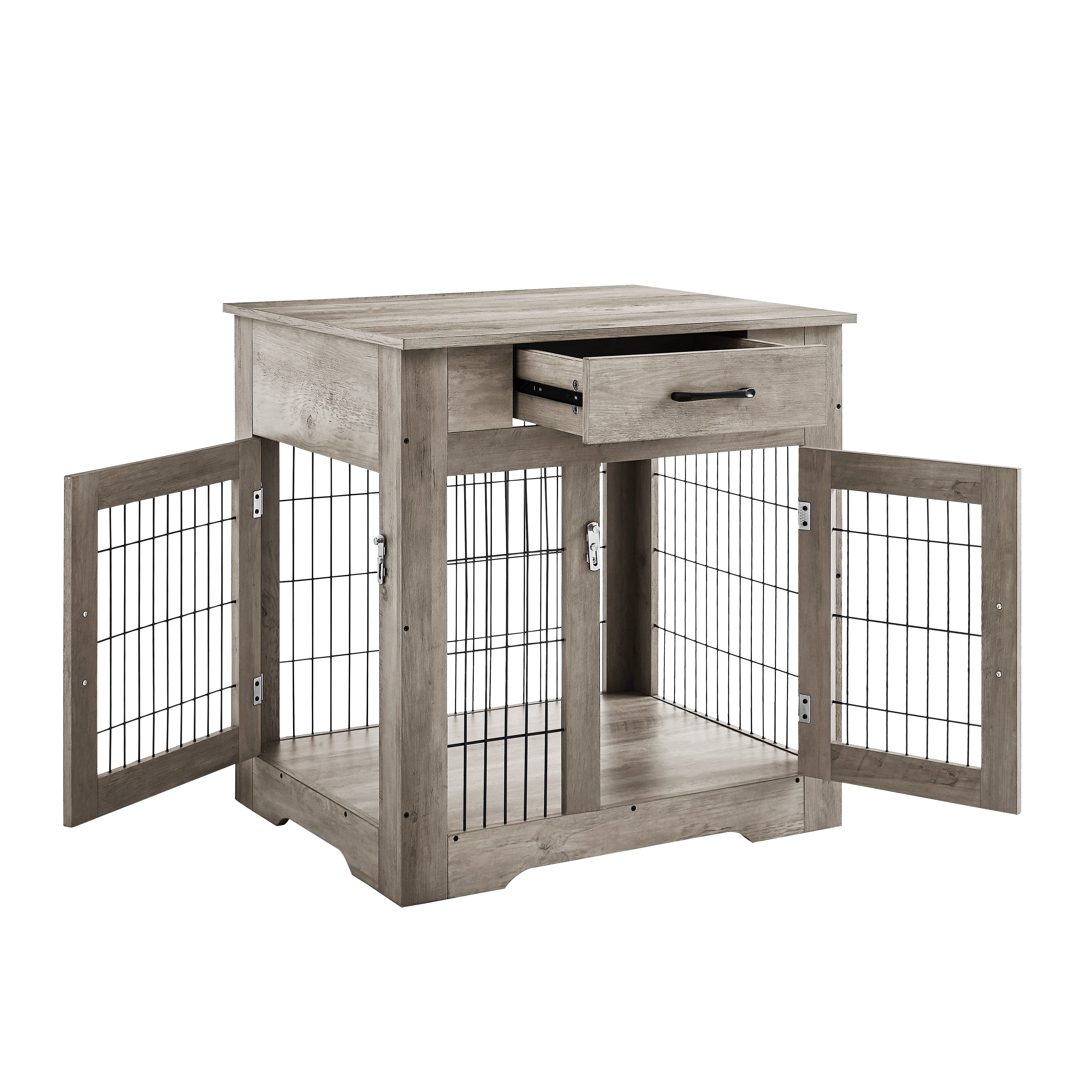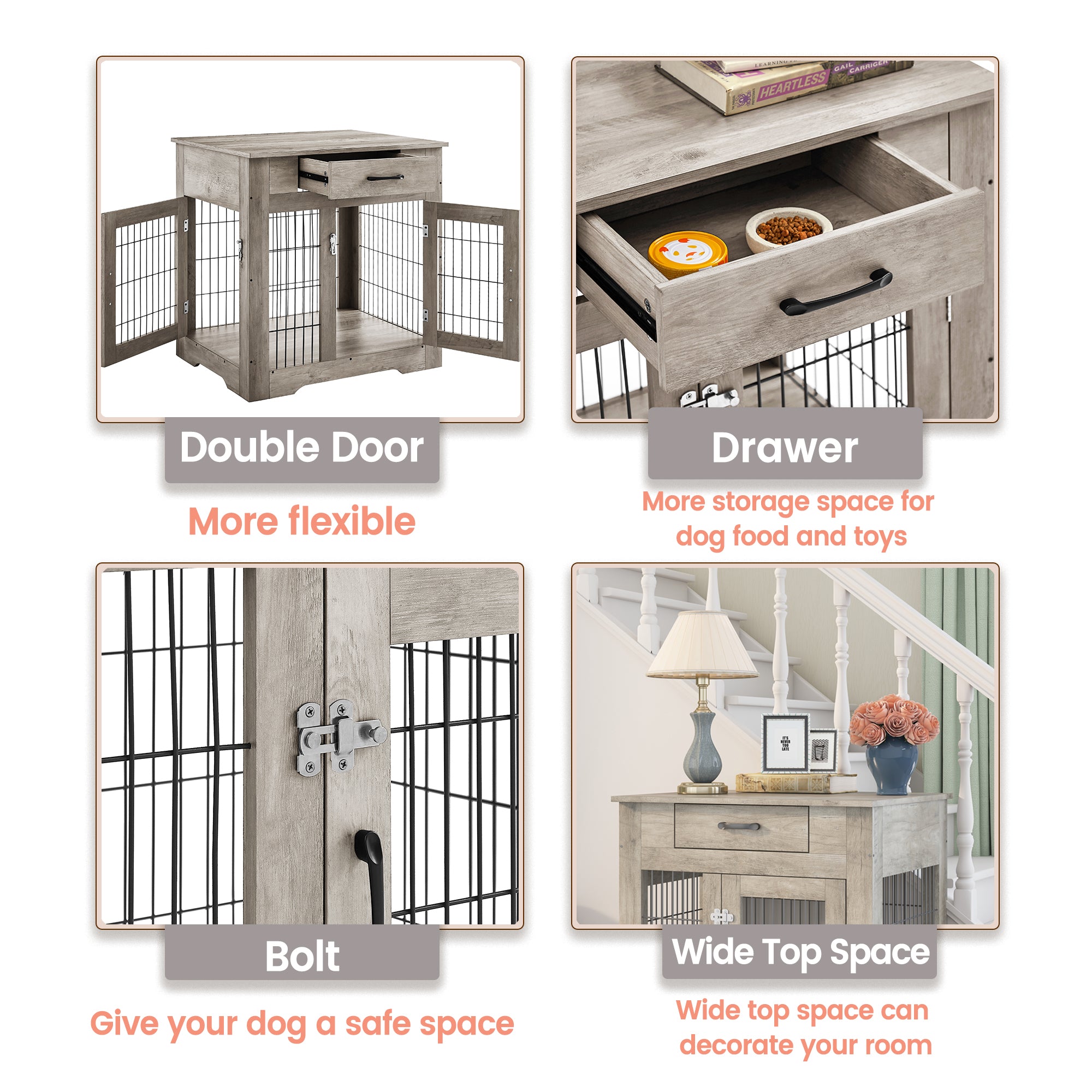 Furniture Style Dog Crate End Table with Drawer, Pet Kennels with Double Doors, Dog House Indoor Use