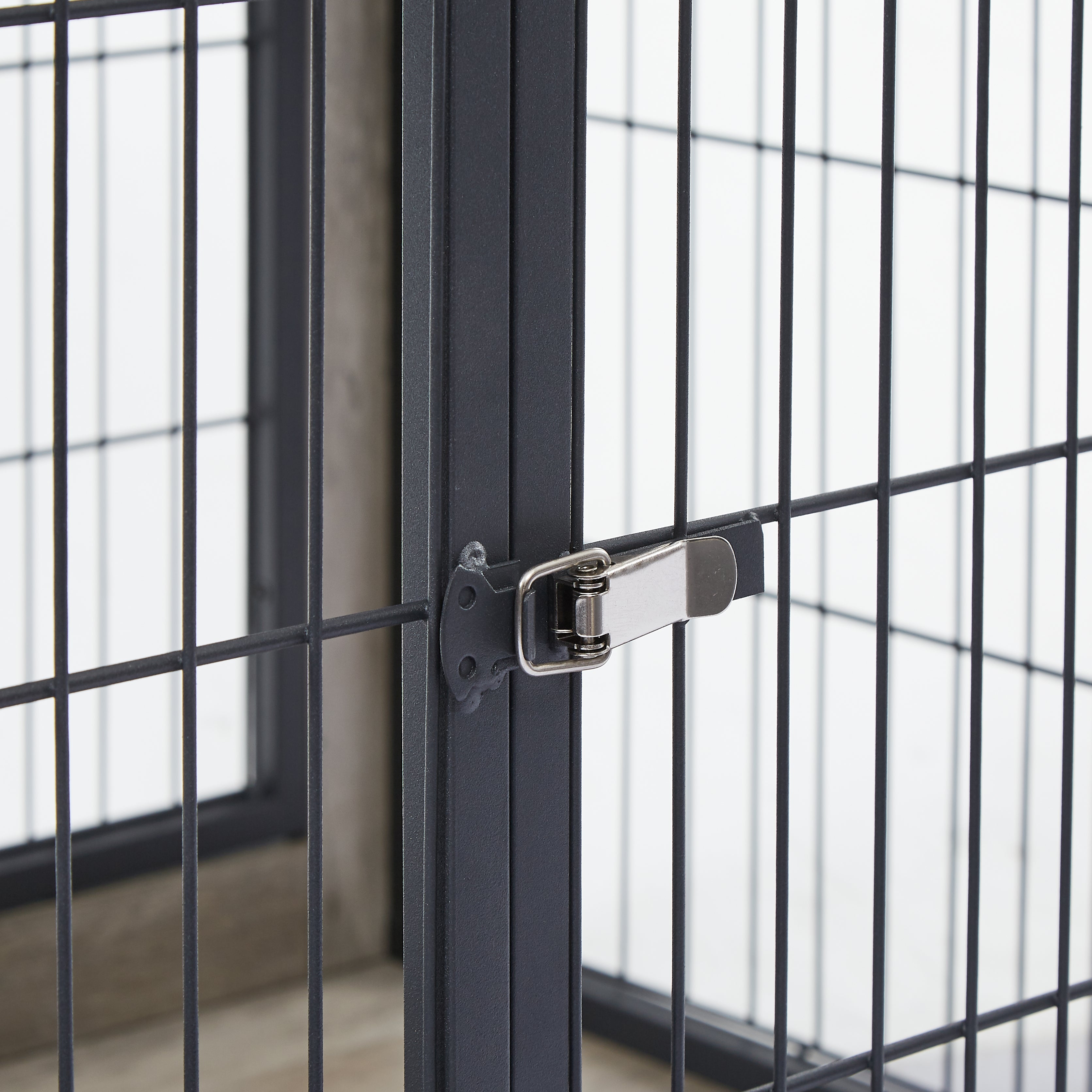 Furniture Style Dog Crate Side Table on Wheels with Double Doors and Lift Top.Grey,38.58''w x 25.5''d x 27.36''h.