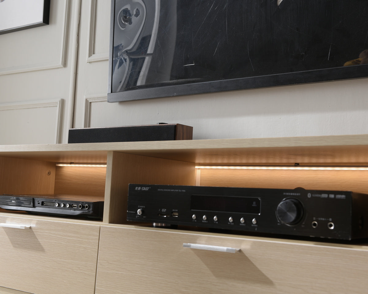 LED TV Stand LED Entertainment Center with Storage Modern LED Media Console Tables LED TV Cabinet for Living Room, Bedroom and Office Wood